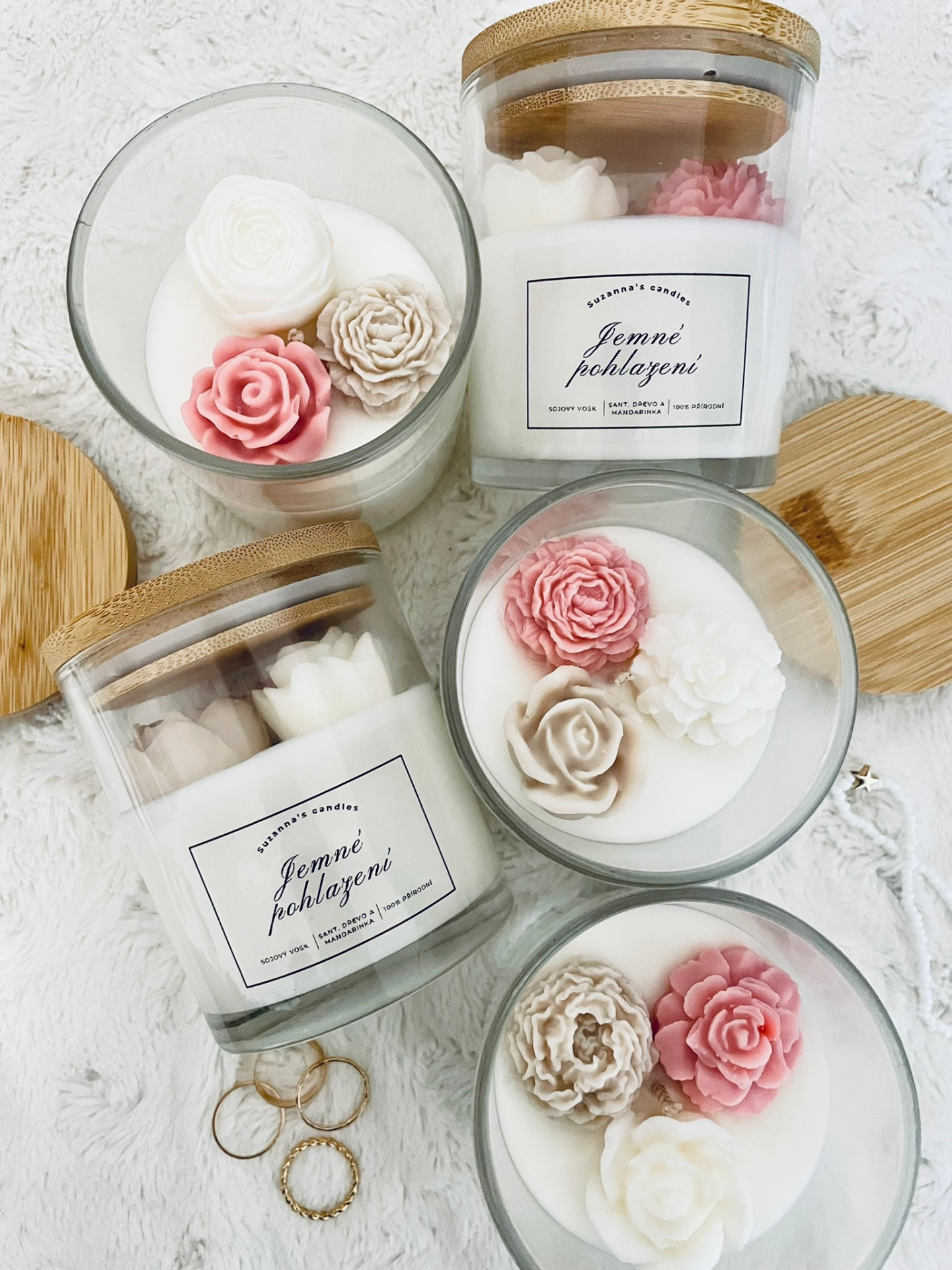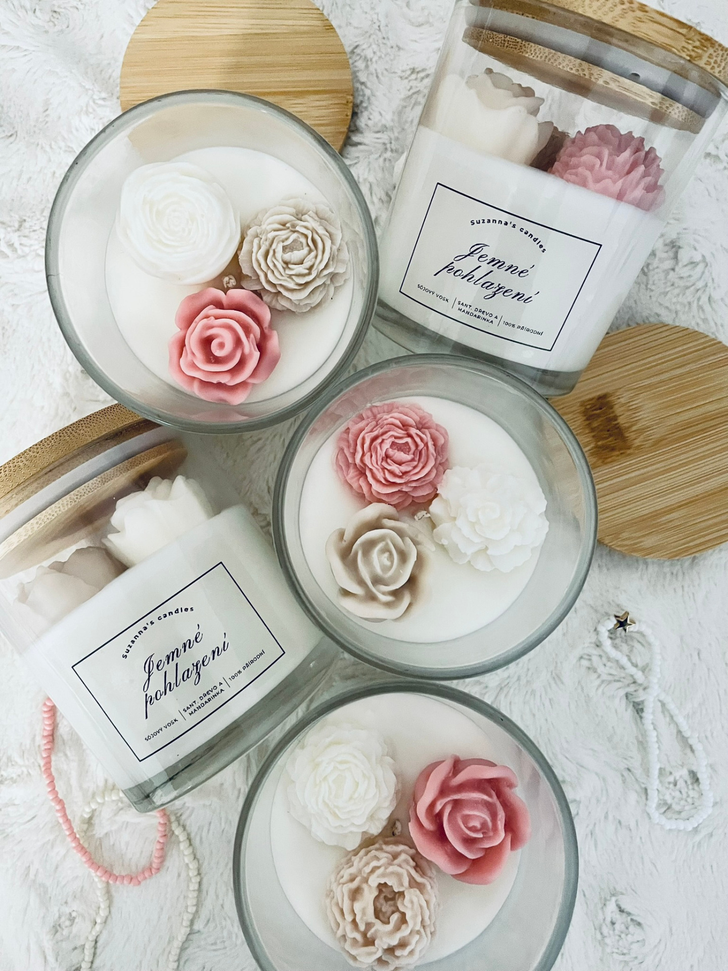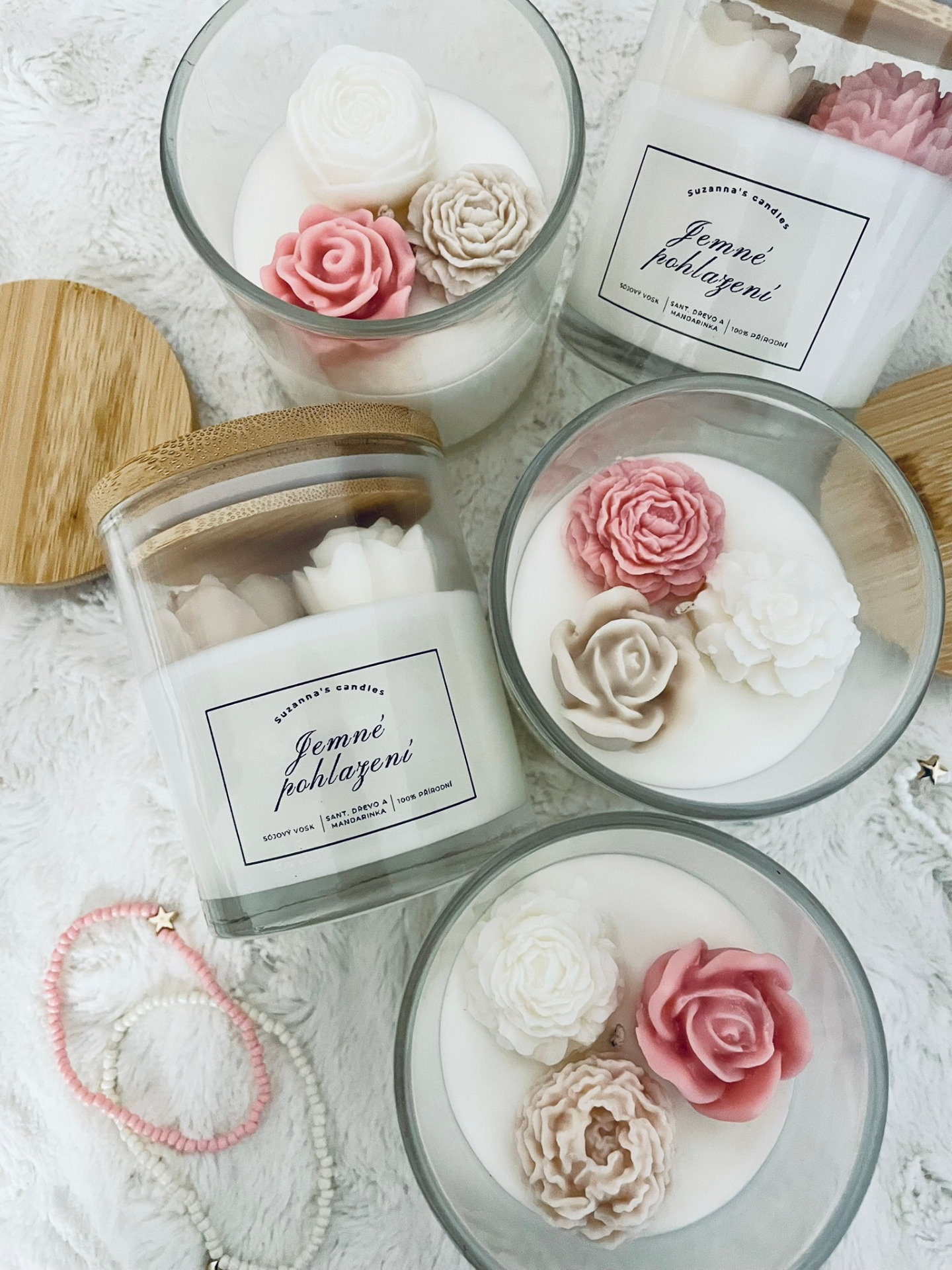 Popis svíčky: Tato svíčka zaujme na první pohled svým jemným zdobením drobnými květinkami, které působí něžně, romanticky a velmi žensky. Dekorace je laděná s citem pro detail a podtrhuje ruční charakter každého kusu, díky čemuž je každá svíčka originálem.