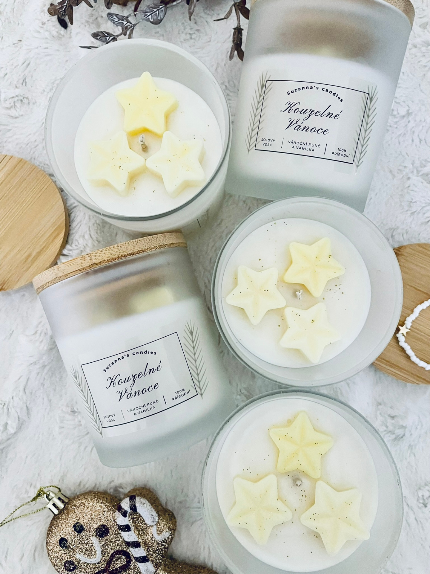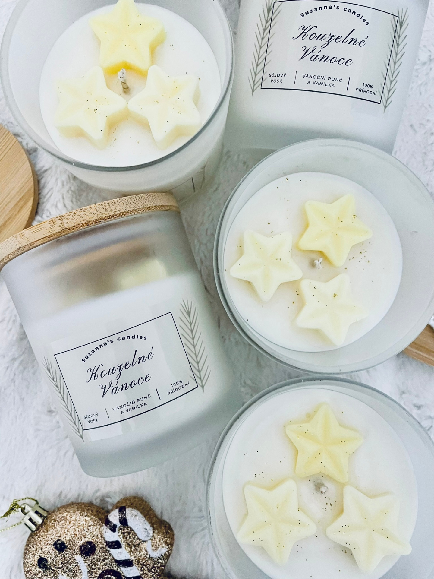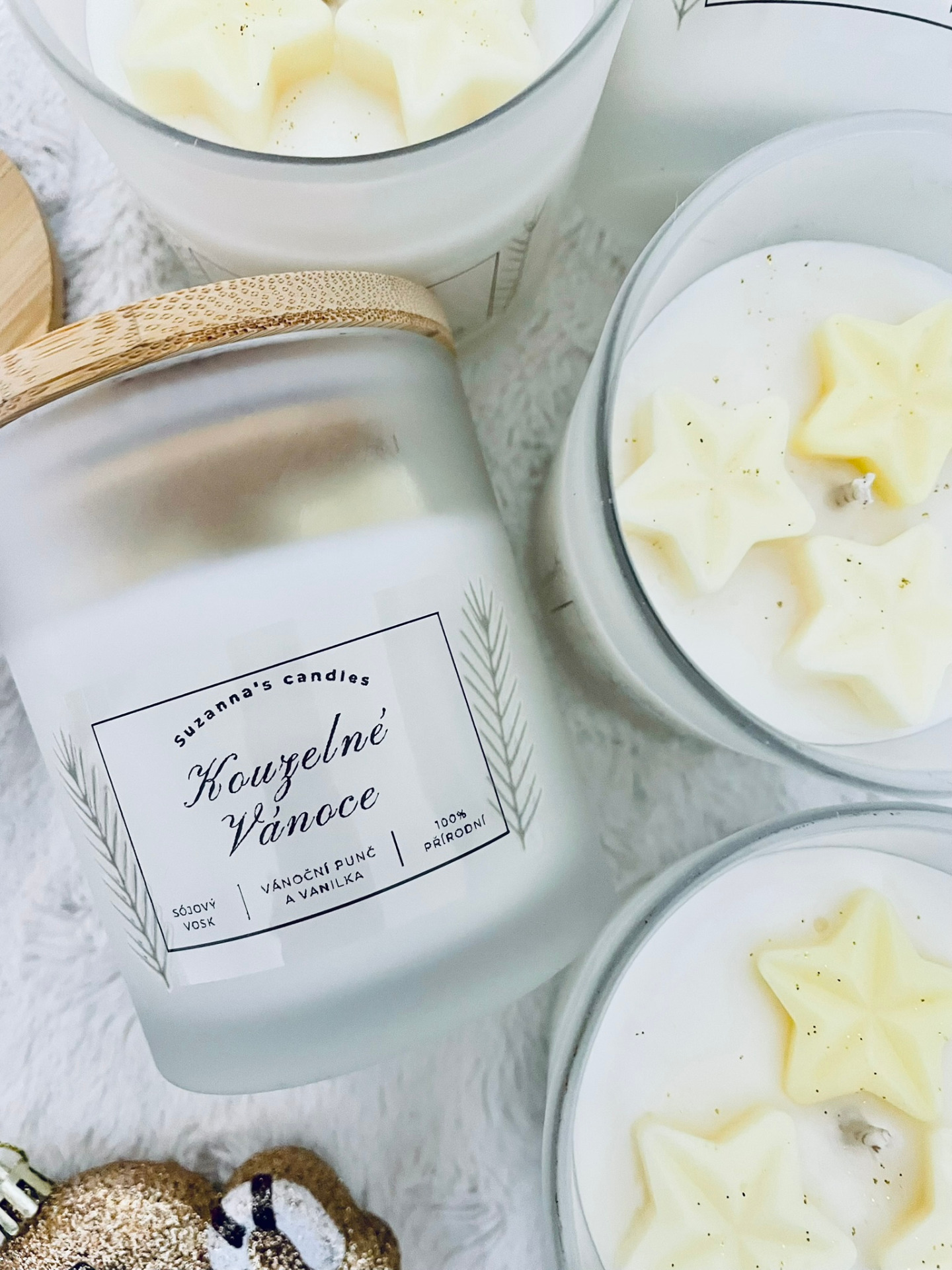 Popis svíčky: Oslavte kouzlo Vánoc s naší sojovou svíčkou Kouzelné vánoce, která je elegantně zdobena jasně žlutými hvězdami. Tento design evokuje vánoční atmosféru a dodá vašemu domovu slavnostní nádech. Svíčka nejenže krásně vypadá, ale také přináší teplé a útulné světlo.
