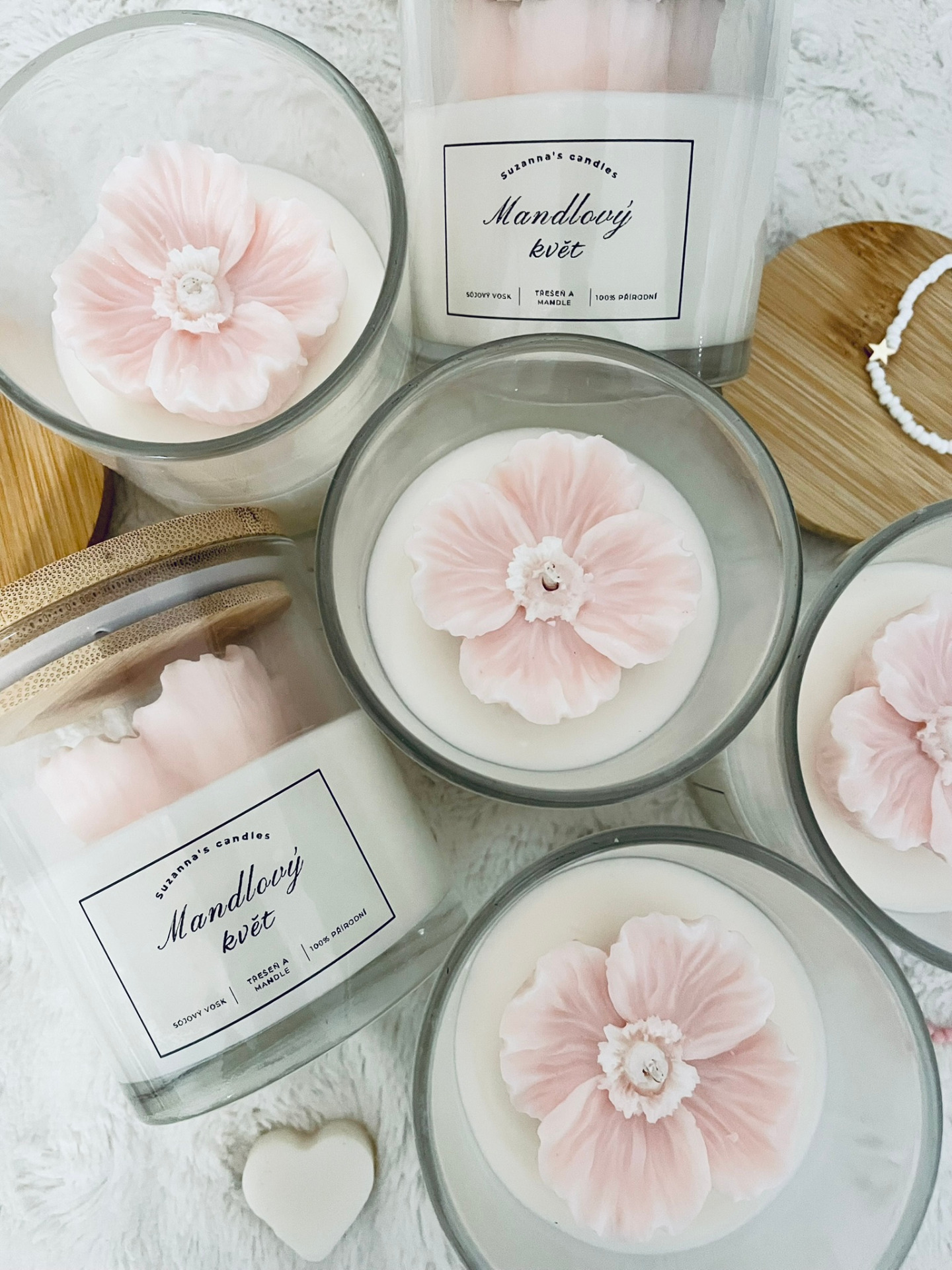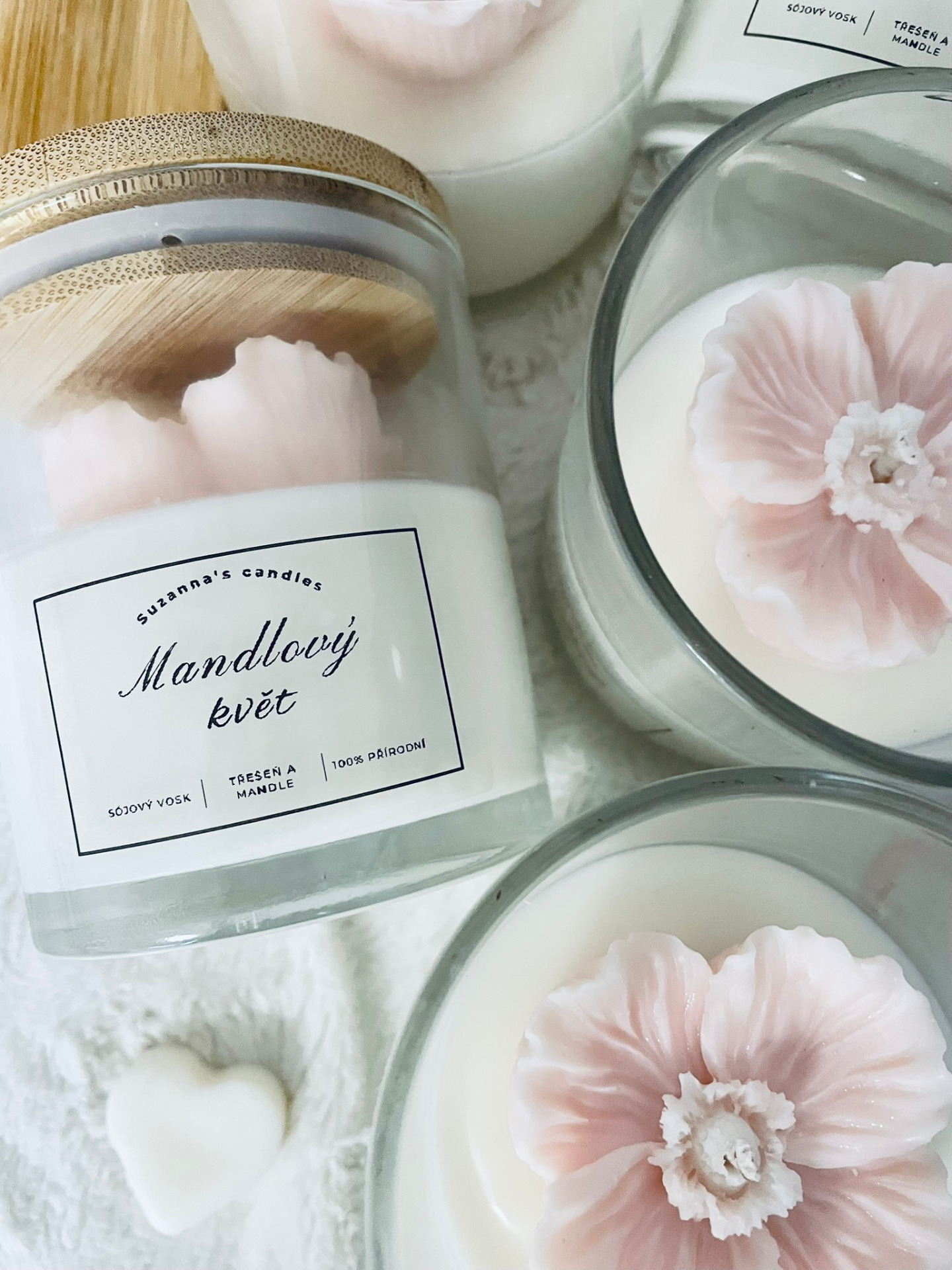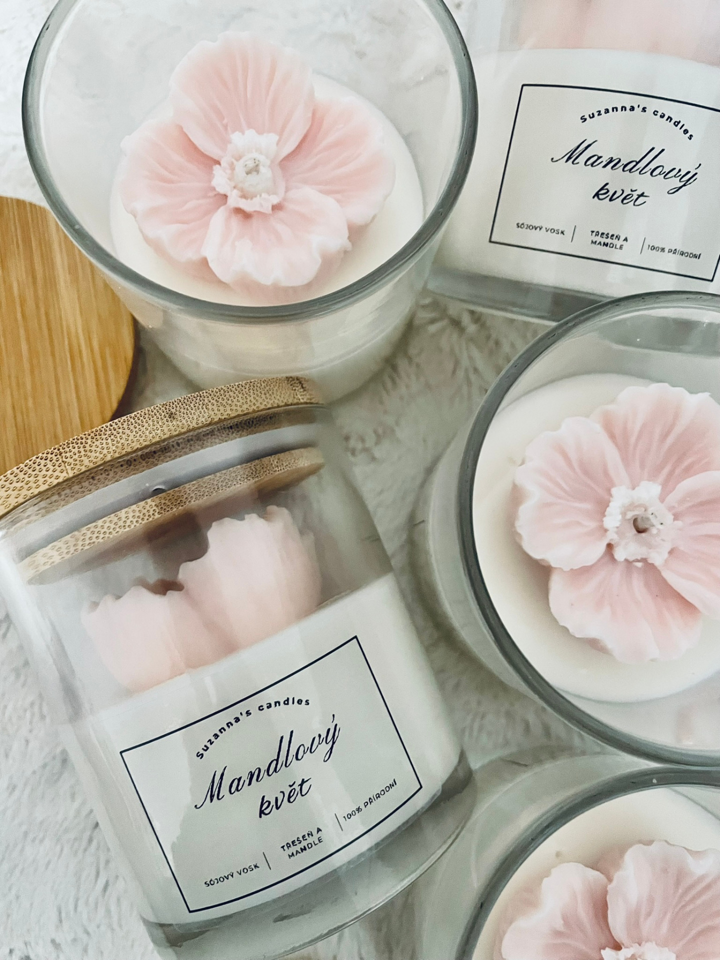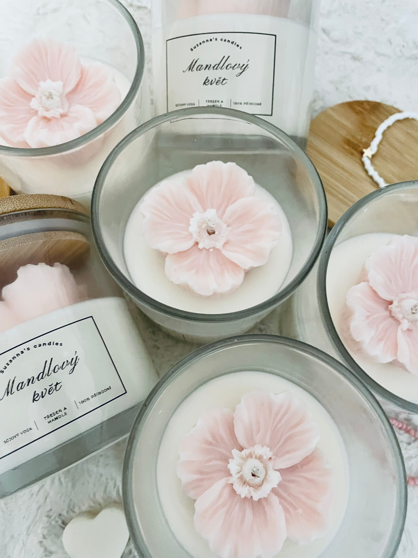 Popis svíčky: Přineste si do svého domova kousek romantiky se sojovou svíčkou Mandlový květ, která je zdobena krásným růžovým květem. Tato svíčka nejenže okouzlí svým vzhledem, ale také vytvoří příjemnou a útulnou atmosféru ve vašem prostoru.