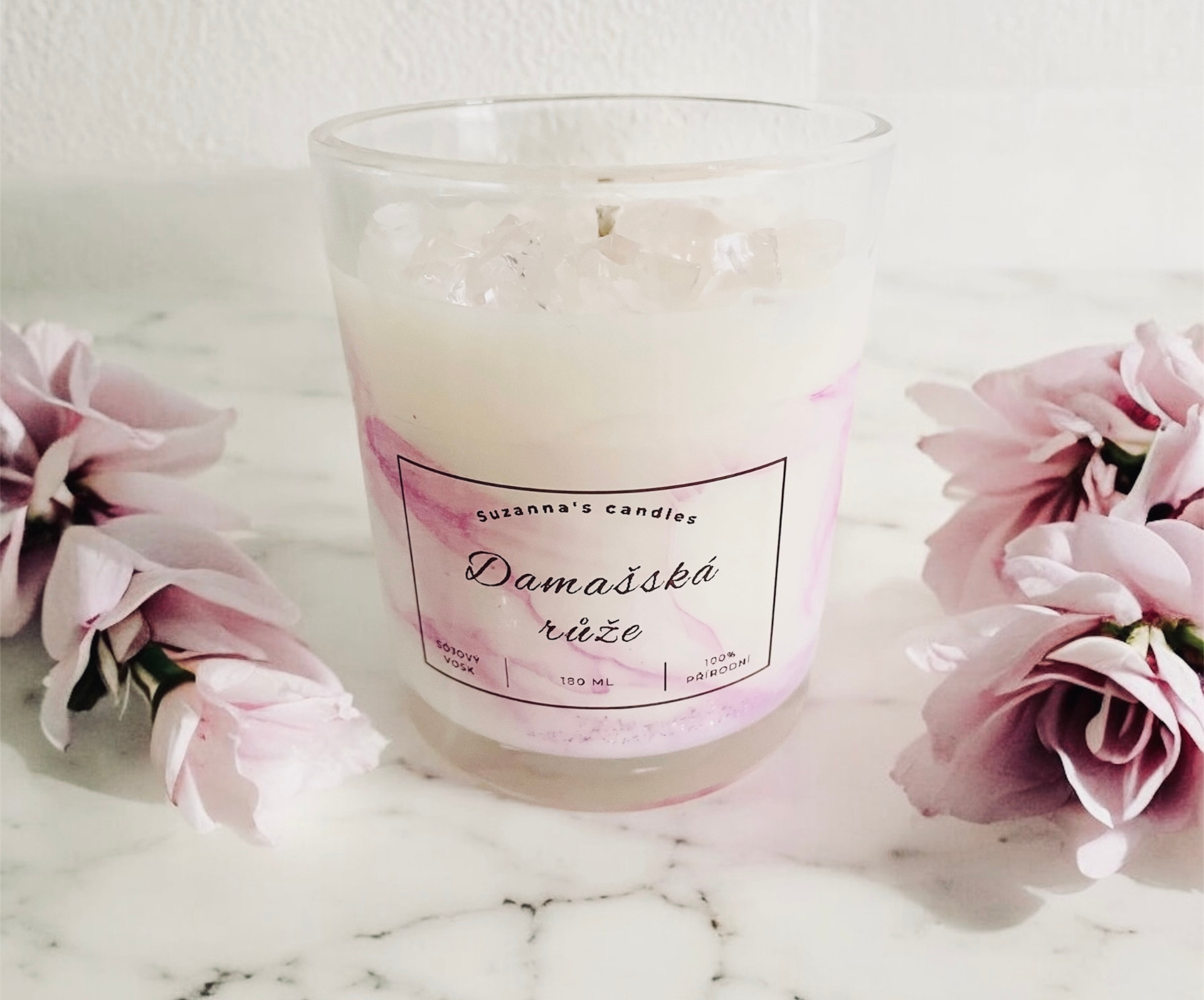 Mramorová svíčka - damašská růže
