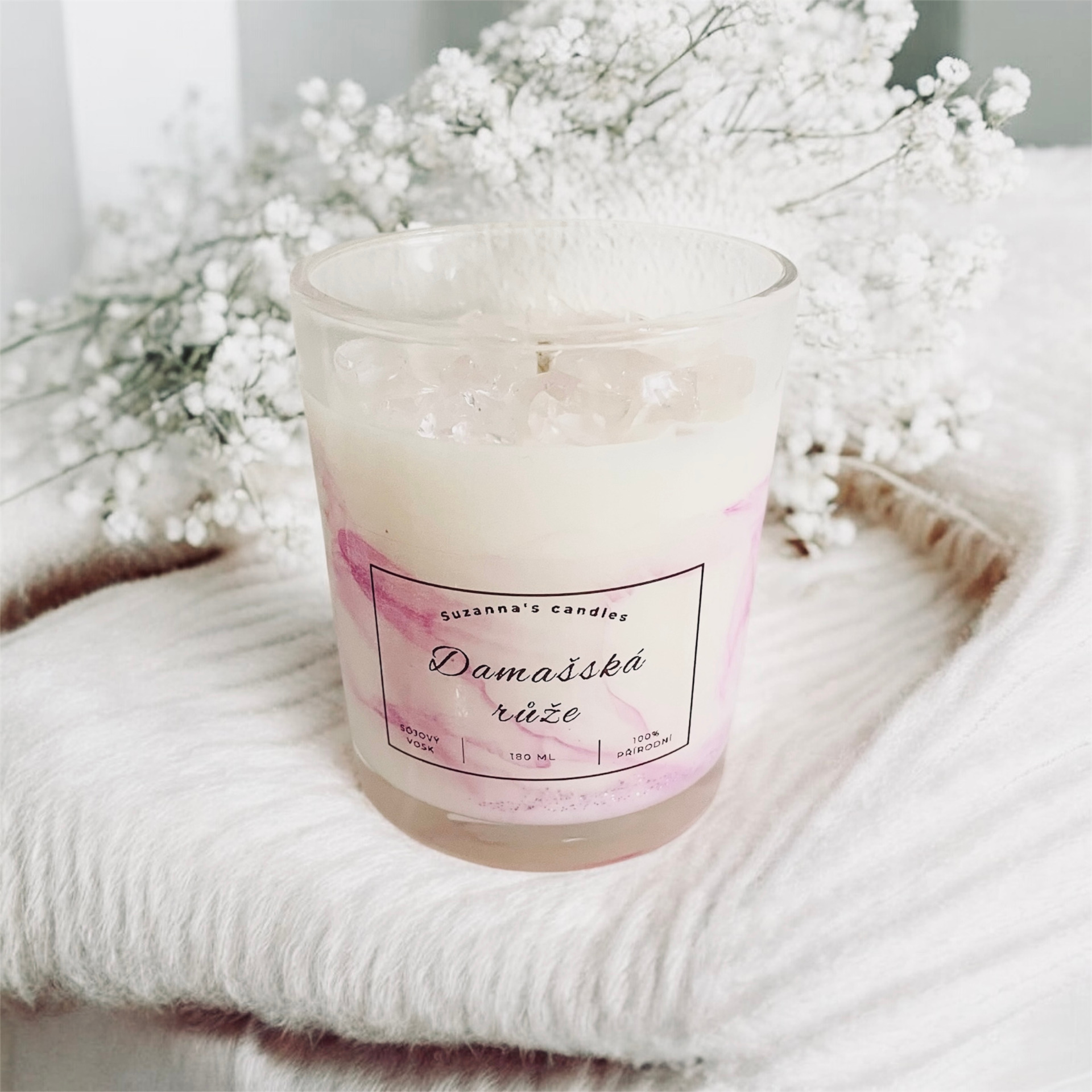 Vůně: Damašské růže je bohatá, květinová a elegantní. Není těžká ani vtíravá – naopak působí hebce, uklidňujícím dojmem a navozuje pocit pohody, čistoty a lehkého luxusu. Ideální pro chvíle relaxace, zpomalení a vytvoření příjemné atmosféry domova.