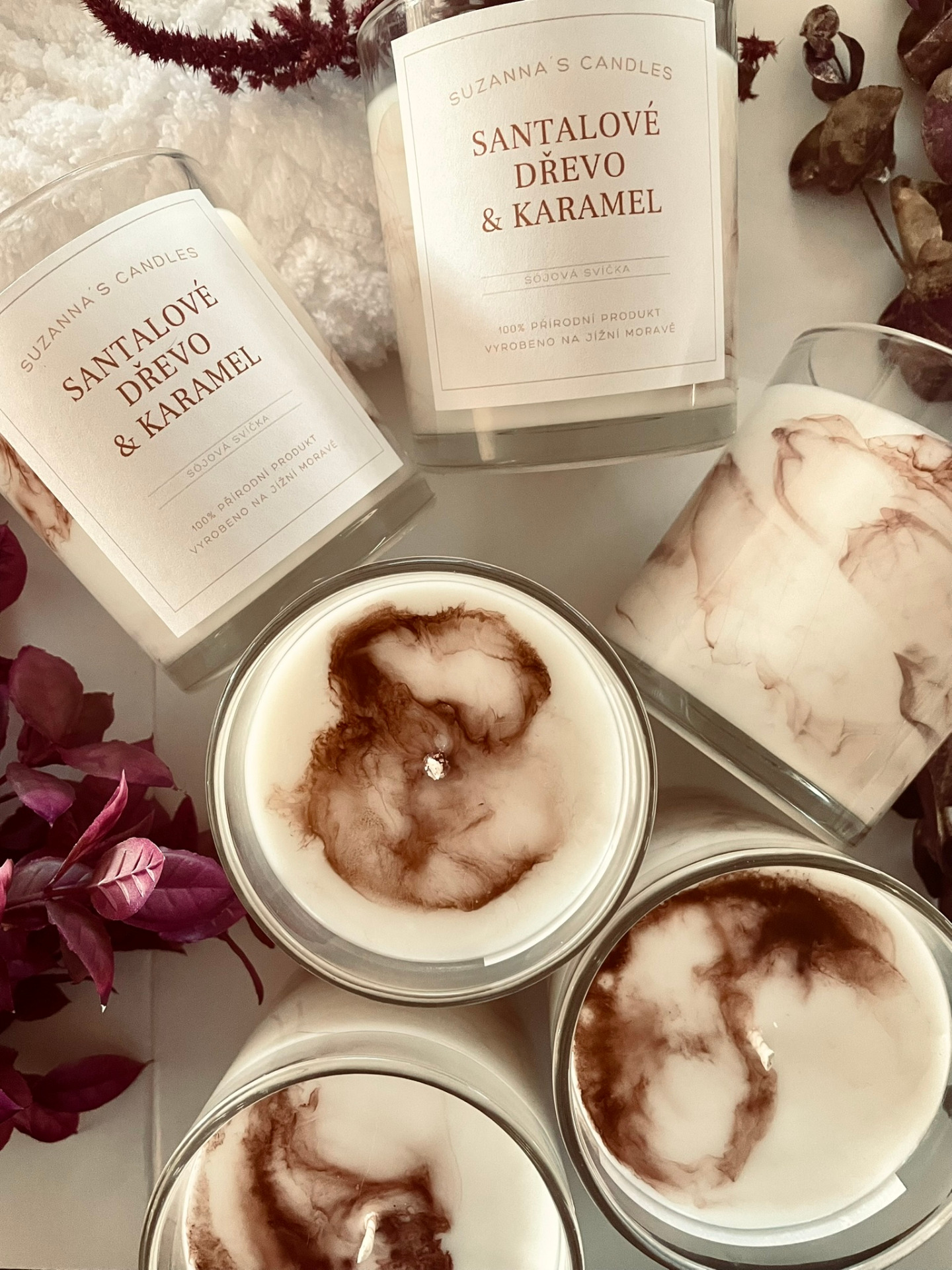Vůně: Vůně santalového dřeva a karamelu je hřejivá, jemně sladká a smyslná. Santalové dřevo dodává vůni hloubku a klidnou eleganci, zatímco karamel přináší měkký, hřejivý tón, který navozuje pocit pohodlí, bezpečí a domácí pohody.