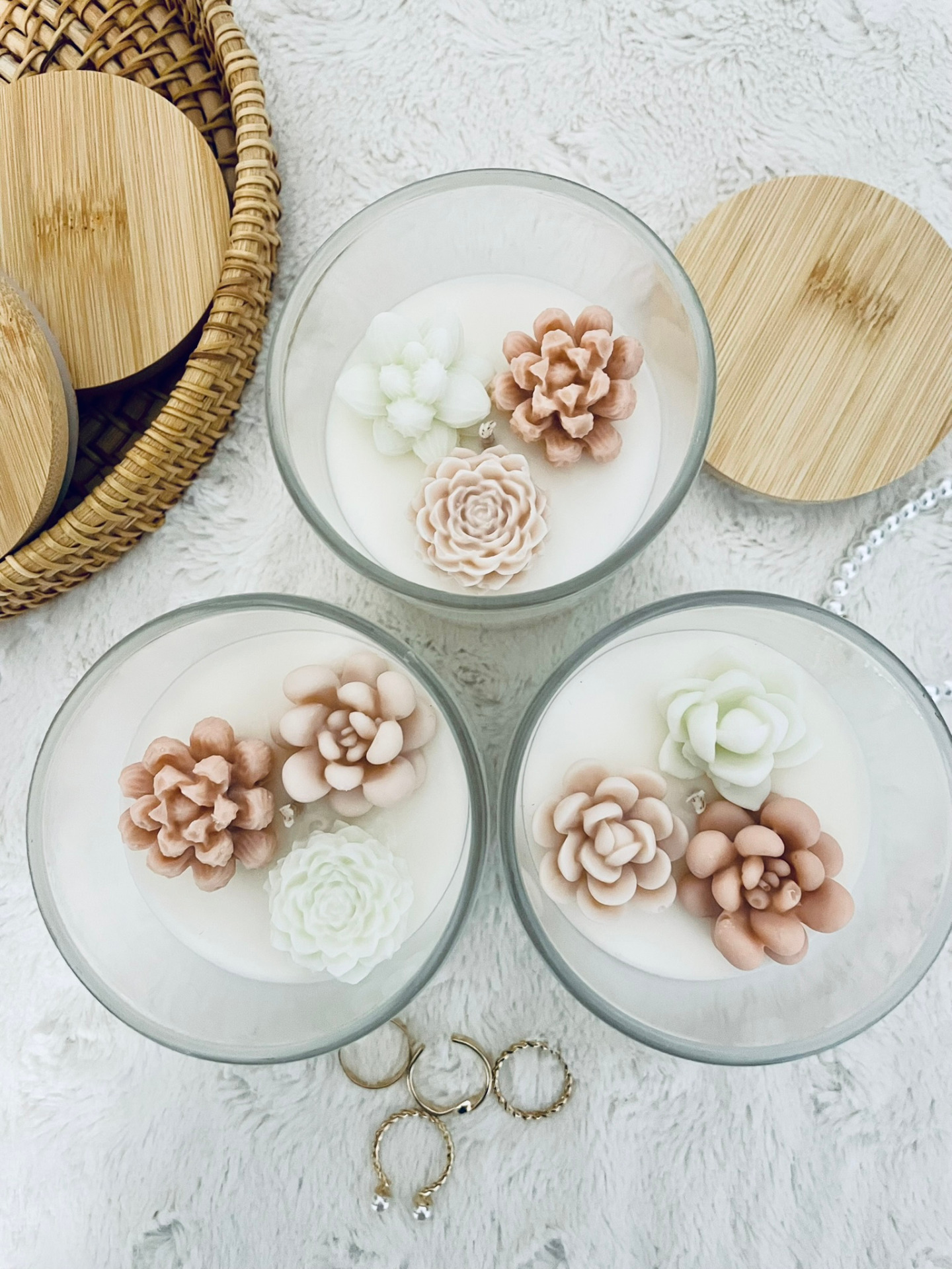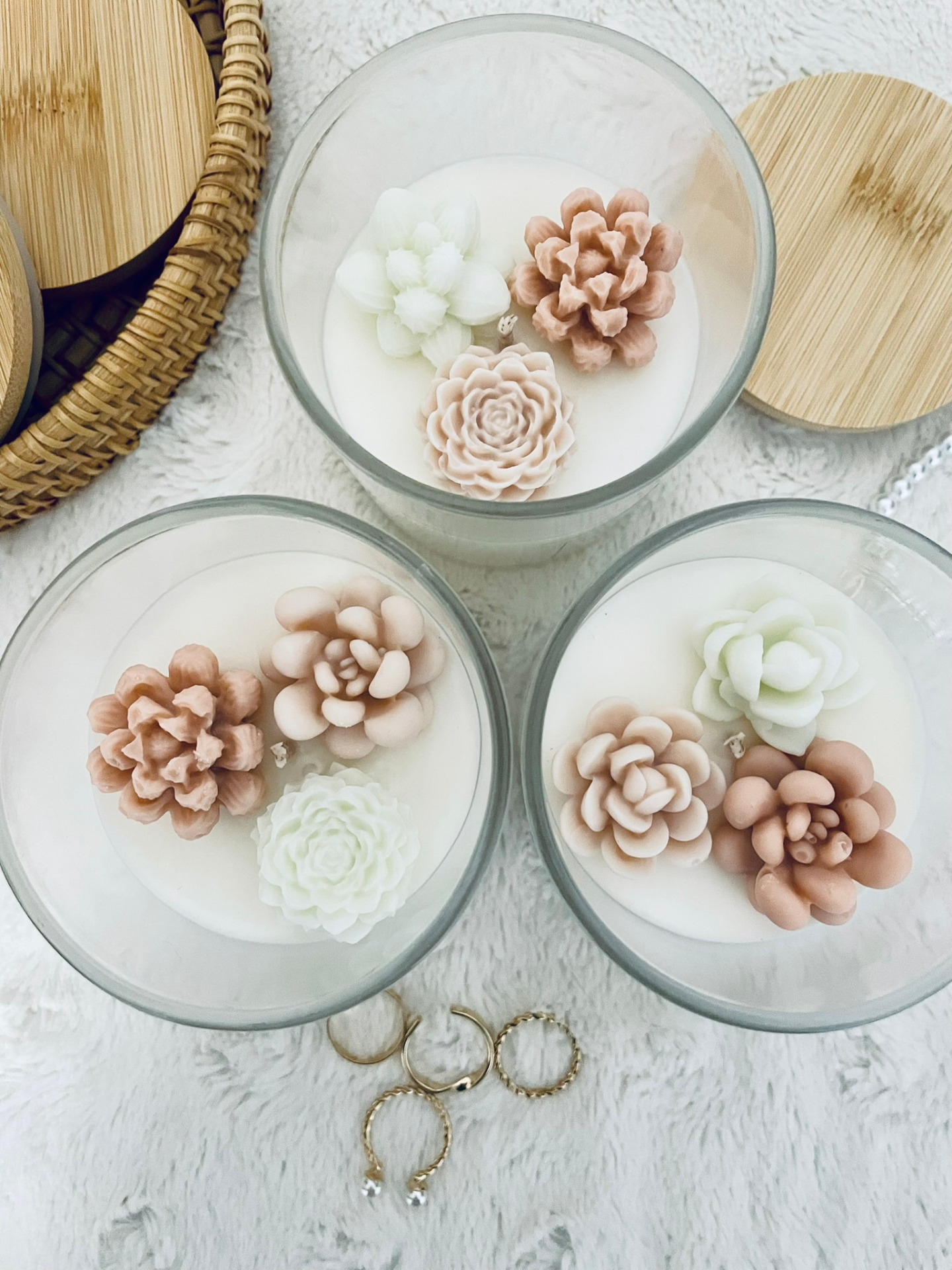 Popis svíčky: Tato svíčka zaujme na první pohled svým originálním zdobením drobnými kaktusy v jemně laděných barvách. Dekorace působí hravě, ale zároveň elegantně a čistě, díky čemuž svíčka krásně vynikne v moderním i boho interiéru. Každý detail je zpracován s citem a podtrhuje ruční výrobu, díky níž je každá svíčka jedinečným kouskem.
